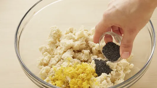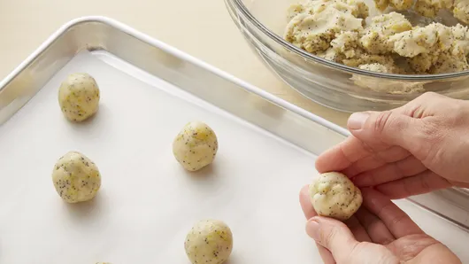 Step1Heat oven to 350°F. Line 2 large cookie sheets with cooking parchment paper. In large bowl, crumble cookie dough. Add lemon peel and poppy seed; mix well.