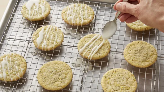 Step3In medium bowl, mix powdered sugar and 1 tablespoon of the lemon juice, stirring well. Add additional lemon juice, 1 teaspoon at a time, mixing until drizzling consistency. Drizzle on top of cooled cookies; allow glaze to set 10 to 15 minutes.