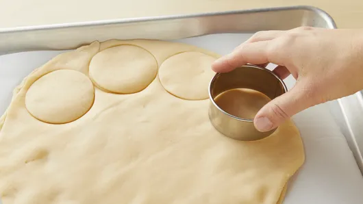 Step4With 3-inch cookie cutter, cut out cookies by gently pressing down through both crust layers.