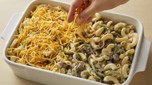 Step4Cover with foil. Bake 20 to 25 minutes or until mixture is hot (at least 165°F in center) and Cheddar cheese is melted.