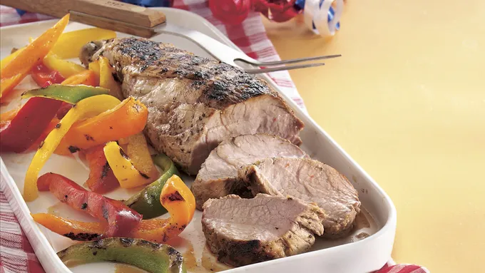 Step1Cut each pork tenderloin in half lengthwise, cutting to but not through bottom; open and flatten. Place tenderloins in large resealable food-storage plastic bag or shallow nonmetal dish.