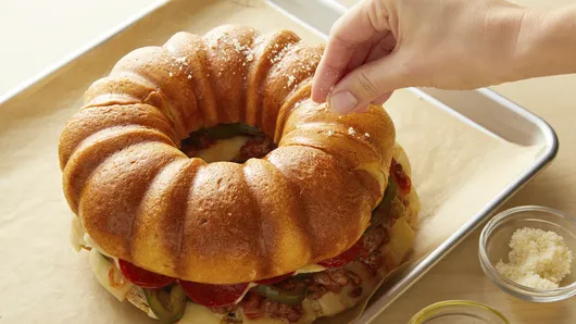 var configuration = {"title":"Loaded Pizza Bundtwich","introduction":"The name says it all! This irresistible Bundtwich is loaded with all of your favorite pizza toppings: Italian sausage, sliced onions, green bell pepper strips, pepperoni and plenty of cheese. One bite of this genius recipe, and you just may never eat regular pizza again—it’s that good.","servingSize":"1 Wedge","image":{"small":{"media":"(min-width: 0px)","src":"https://mojo.generalmills.com/api/public/content/ssx0OFjRzUibVNCcKKfFSw_webp_base.webp?v=b02e2e3b\u0026t=e724eca7b3c24a8aaa6e089ed9e611fd"},"medium":{"media":"(min-width: 500px)","src":"https://mojo.generalmills.com/api/public/content/ssx0OFjRzUibVNCcKKfFSw_webp_base.webp?v=b02e2e3b\u0026t=191ddcab8d1c415fa10fa00a14351227"},"large":{"media":"(min-width: 767px)","src":"https://mojo.generalmills.com/api/public/content/ssx0OFjRzUibVNCcKKfFSw_webp_base.webp?v=b02e2e3b\u0026t=191ddcab8d1c415fa10fa00a14351227"},"alt":"Loaded Pizza Bundtwich"},"contributor":{"label":"By","name":"Pillsbury Kitchens","profileUrl":"/about-us","displayDate":{"label":"Updated","date":"Apr 13, 2020"}},"ingredientGroups":[{"ingredients":[{"quantity":"2","description":"cans (13.8 oz) refrigerated Pillsbury™ Classic Crust Pizza Crust","productLink":"/products/pizza-crust/classic-pizza-crust"},{"quantity":"1/2","description":"lb bulk mild Italian sausage"},{"quantity":"1","description":"cup thinly sliced onions"},{"quantity":"1","description":"medium green bell pepper, cut in strips"},{"quantity":"1/2","description":"cup Muir Glen™ organic tomato sauce"},{"quantity":"1/2","description":"cup pepperoni slices"},{"quantity":"12","description":"slices (0.75 oz each) mozzarella cheese, halved"},{"quantity":"1","description":"tablespoon olive oil"},{"quantity":"1","description":"tablespoon grated Parmesan cheese"}]}],"steps":[{"description":"Heat oven to 350°F. Spray 12-cup fluted tube cake pan with cooking spray."},{"description":"Remove dough from both cans; do not unroll. Place in pan in a circle; pinch both ends of dough firmly together to seal into 1 ring. Bake 33 to 38 minutes or until golden brown. Cool slightly, about 10 minutes. Remove bread from pan to cooling rack. Cool completely, about 1 hour.","stepShotImageUrl":"//mojo.generalmills.com/api/public/content/JXH1hwfPJkaHUSx6bQd58A_webp_base.webp?v=e2ebe706\u0026t=51a43a57af4046789e5a7f20567b1195"},{"description":"Line 18x13-inch pan with cooking parchment paper. With serrated bread knife, carefully cut bread in half horizontally. Pinch or tear bread from cut sides of top and bottom halves, leaving about a 3/4-inch shell; discard or save bread pieces for another use. Place bread rings cut sides up on pan.","stepShotImageUrl":"//mojo.generalmills.com/api/public/content/0fty4XbGgUSnqF2X23DpiQ_webp_base.webp?v=3012f139\u0026t=51a43a57af4046789e5a7f20567b1195"},{"description":"In 12-inch nonstick skillet, cook sausage, onions and bell pepper over medium-high heat 7 to 9 minutes, stirring frequently, until sausage is no longer pink and vegetables are tender. Drain, if necessary. Stir in tomato sauce.","stepShotImageUrl":"//mojo.generalmills.com/api/public/content/3twBrMQbK0qIiUQRbRRaQA_webp_base.webp?v=913f66ee\u0026t=51a43a57af4046789e5a7f20567b1195"},{"description":"Use decorative side of bread ring for top of Bundtwich. Place pepperoni and 12 of the cheese slice halves in decorative side of bread ring. Place remaining cheese slice halves in other side of bread ring; fill with sausage mixture. Bake 8 to 12 minutes or until cheese is melted and pepperoni is hot.","stepShotImageUrl":"//mojo.generalmills.com/api/public/content/jhKPaXyu_0OpKf4FJWIvbw_webp_base.webp?v=3d1672bb\u0026t=51a43a57af4046789e5a7f20567b1195"},{"description":"Carefully replace decorative side of bread ring; lightly press. Brush with olive oil, and sprinkle with Parmesan cheese. With serrated bread knife, cut into 8 wedges to serve.","stepShotImageUrl":"//mojo.generalmills.com/api/public/content/4Wt1tj16hUqjB4xfpj6xlA_webp_base.webp?v=f2c4fe3f\u0026t=51a43a57af4046789e5a7f20567b1195"}],"tips":[{"title":"","description":"Bake your dough up to 4 hours ahead of time so your Bundtwich is ready to assemble for a quick meal.","category":"Do-Ahead","tipShots":[]},{"title":"","description":"Give this Bundtwich even more cheesy flavor by making half of the cheese provolone and the other half mozzarella. ","category":"Recipe/Ingredient Facts","tipShots":[]},{"title":"","description":"Italian sausage varies in fat levels. If your sausage is particularly fatty, make sure you drain the sausage after browning. If there isn’t any fat visible in the pan after browning, then there is no need to drain. When you add the sausage to the Bundtwich, try to mound it in the middle of the bread at first and press down slightly to be sure the filling stays put.","category":"Recipe/Ingredient Facts","tipShots":[]},{"title":"","description":"You can experiment with your favorite pizza toppings in this recipe! Just make sure they are all cooked before adding to the Bundtwich. ","category":"Recipe/Ingredient Facts","tipShots":[]},{"title":"","description":"Pizzerias often brush their crusts with olive oil as soon as they come out of the oven and sometimes sprinkle with Parmesan cheese, pepper flakes and other seasonings. This gives the crust a beautiful look and flavor. We went with olive oil and grated Parmesan for the outside of this Bundtwich, but feel free to experiment!","category":"Presentation/Garnish","tipShots":[]},{"title":"","description":"Kitchen Tested - 11/2018","category":"Kitchen Tested","tipShots":[]}],"kitchenTips":[{"title":"","description":"Bake your dough up to 4 hours ahead of time so your Bundtwich is ready to assemble for a quick meal.","category":"Do-Ahead","tipShots":[]},{"title":"","description":"Give this Bundtwich even more cheesy flavor by making half of the cheese provolone and the other half mozzarella. ","category":"Recipe/Ingredient Facts","tipShots":[]},{"title