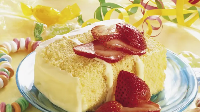 Step4To serve, cut cake into 12 slices. Spoon 1/3 cup fruit over each slice of cake.