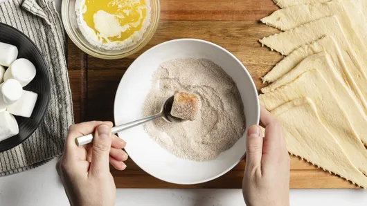 Stir together sugar, flour, and cinnamon to make the sweet, sparkly marshmallow coating.