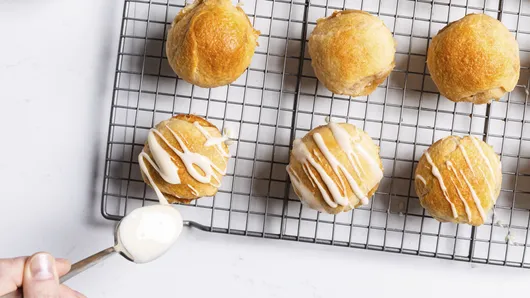 If you want your puffs to be a little warm, you could pop them in the microwave on medium for 10 seconds, but this will cause the glaze to melt, and the puffs will become sticky and gooey. It’s better to eat them at room temperature!