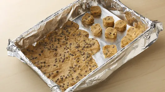 Step1Heat oven to 350°F. Line 13x9-inch pan with foil, extending foil over edges; spray with cooking spray. Place cookie rounds in pan; press dough evenly in bottom of pan. Bake 15 minutes.
