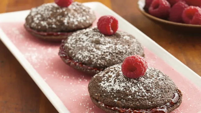 Step5About 1 hour before serving, arrange fresh raspberries over filling. Refrigerate until serving time. With sharp knife, loosen dessert from side of pan; remove side of pan. Cut into wedges. Serve with raspberry sauce. Store in refrigerator.