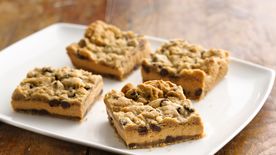 Heat oven to 350°F. Spray 13x9-inch pan with Crisco® Original No-Stick Cooking Spray. Break up cookie dough and press evenly in bottom of pan. Bake 15 to 20 minutes or until golden brown. Cool completely, about 30 minutes.