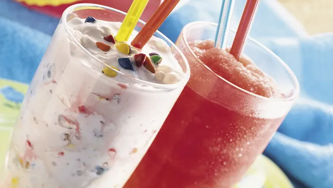 Step2To serve, spoon 1/2 cup frozen mixture into each glass. Add 1/2 cup carbonated beverage to each glass; stir gently.