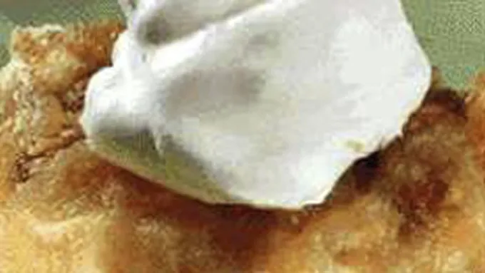 Step2Lightly spoon flour into measuring cup; level off. Add flour, baking powder, cinnamon, salt, nutmeg and allspice; mix well. Stir in apples and 1/2 cup walnuts. Spoon into greased and floured pan.