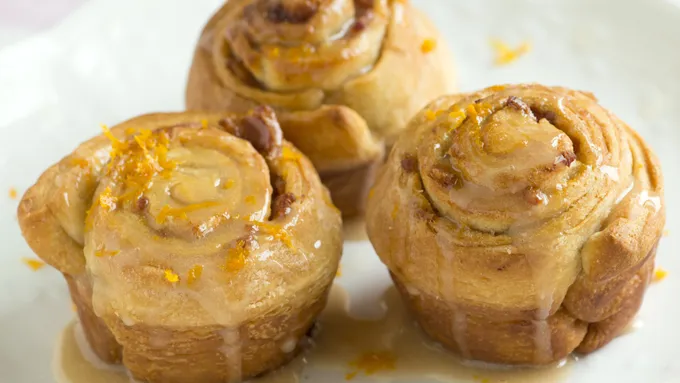 Step6In small bowl, mix glaze ingredients until smooth, adding enough milk for desired drizzling consistency. Drizzle over warm rolls. Serve warm.