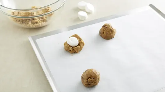 var configuration = {"title":"Marshmallow-Stuffed S\u0027mores Cookies","introduction":"These secret-center cookies take the campfire classic to a whole new level. Bake up marshmallows wrapped in chocolate chip cookie dough and graham cracker crumbs for s’mores you can make all year! ","servingSize":"1 Serving","image":{"small":{"media":"(min-width: 0px)","src":"https://mojo.generalmills.com/api/public/content/qGvz933WOEex0d6XDVT0tQ_webp_base.webp?v=476505e8\u0026t=e724eca7b3c24a8aaa6e089ed9e611fd"},"medium":{"media":"(min-width: 500px)","src":"https://mojo.generalmills.com/api/public/content/qGvz933WOEex0d6XDVT0tQ_webp_base.webp?v=476505e8\u0026t=191ddcab8d1c415fa10fa00a14351227"},"large":{"media":"(min-width: 767px)","src":"https://mojo.generalmills.com/api/public/content/qGvz933WOEex0d6XDVT0tQ_webp_base.webp?v=476505e8\u0026t=191ddcab8d1c415fa10fa00a14351227"},"alt":"Marshmallow-Stuffed S\u0027mores Cookies"},"contributor":{"label":"By","name":"Pillsbury Kitchens","profileUrl":"/about-us","displayDate":{"label":"Updated","date":"Jul 26, 2018"}},"ingredientGroups":[{"ingredients":[{"quantity":"1","description":"roll (16.5 oz) refrigerated Pillsbury™ Chocolate Chip Cookie Dough","productLink":"/products/cookies/refrigerated-cookies/chocolate-chip"},{"quantity":"1","description":"cup graham cracker crumbs"},{"quantity":"6","description":"large marshmallows, cut in half"}]}],"steps":[{"description":"Heat oven to 350°F. Let cookie dough stand at room temperature 10 minutes to soften. Line 2 large cookie sheets with cooking parchment paper."},{"description":"In large bowl, break up cookie dough. Stir or knead in 3/4 cup of the graham cracker crumbs until well blended (reserve remaining crumbs).","stepShotImageUrl":"//mojo.generalmills.com/api/public/content/pfhGHxZ0NEad5iO-hyOBVA_webp_base.webp?v=63fa8450\u0026t=51a43a57af4046789e5a7f20567b1195"},{"description":"Shape dough into 12 (2-inch) balls. Shape 1 ball around 1 marshmallow half, covering completely. Repeat with remaining dough and marshmallows. Roll each ball in remaining 1/4 cup graham cracker crumbs. Place 2 inches apart on cookie sheets.","stepShotImageUrl":"//mojo.generalmills.com/api/public/content/T4L9eG5SKkWVfSpEESVU5A_webp_base.webp?v=32403a6d\u0026t=51a43a57af4046789e5a7f20567b1195"},{"description":"Bake 12 to 15 minutes or until surface of cookie appears cracked and marshmallow shows through. Cool 5 minutes; remove from cookie sheets to cooling racks. Serve warm or cool. Store tightly covered."}],"tips":[{"title":"","description":"You can find graham cracker crumbs in the baking aisle of your grocery store.","category":"Recipe/Ingredient Facts","tipShots":[]},{"title":"","description":"To make your own graham cracker crumbs, place 16 graham cracker squares in food processor. Cover; process, using on-and-off pulses, until fine crumbs.","category":"Techniques","tipShots":[]},{"title":"","description":"The love of combining graham crackers, chocolate and marshmallows goes back almost 100 years in America, when the Girl Scouts published the first document recipe for “Some More.” Toasting marshmallows for s’mores over an open campfire is such a ubiquitous summer tradition that National S’mores Day is August 10, right in the middle of the summer camping season.\r\n \r\nAnd now you can enjoy everything you love about this ooey-gooey flavor trifecta all year round with our three-ingredient marshmallow-stuffed s’mores \u003ca href=\u0022https://www.pillsbury.com/recipes/dish-type/cookies\u0022target=\u0022_blank\u0022\u003ecookies\u003c/a\u003e. Even if you’re an expert on \u003ca href=\u0022https://www.pillsbury.com/everyday-eats/desserts/cookies-bars/how-to-make-cookies\u0022target=\u0022_blank\u0022\u003ehow to make cookies\u003c/a\u003e, with their chocolate-graham base and gooey centers, we bet you’ve never had ones quite like this.\r\n","category":"Editorial","tipShots":[]},{"title":"","description":"Kitchen Tested - 6/2015.","category":"Kitchen Tested","tipShots":[]}],"kitchenTips":[{"title":"","description":"You can find graham cracker crumbs in the baking aisle of your grocery store.","category":"Recipe/Ingredient Facts","tipShots":[]},{"title":"","description":"To make your own graham cracker crumbs, place 16 graham cracker squares in food processor. Cover; process, using on-and-off pulses, until fine crumbs.","category":"Techniques","tipShots":[]}],"additionalContent":[],"faq":[],"tipCategories":[{"categoryName":"Editorial","heading":"More About This Recipe","cssClass":"recipePartStory","expandOnInit":false,"expandText":"More +","collapseText":"Less -","expandEventName":"","collapseEventName":"","image":"","tips":[{"title":"","description":"The love of combining graham crackers, chocolate and marshmallows goes back almost 100 years in America, when the Girl Scouts published the first document recipe for “Some More.” Toasting marshmallows for s’mores over an open campfire is such a ubiquitous summer tradition that National S’mores Day is August 10, right in the middle of the summer camping season.\r\n \r\nAnd now you can enjoy everything you love about this ooey-gooey flavor trifecta all year round with our three-ingredient marshmallow-stuffed s’mores \u003ca href=\u0022https://www.pillsbury.com/recipes/dish-type/cookies\u0022target=\u0022_blank\u0022\u003ecookies\u003c/a\u003e. Even if you’re an expert on \u003ca href=\u0022https://www.pillsbury.com/everyday-eats/desserts/cookies-bars/how-to-make-cookies\u0022target=\u0022_blank\u0022\u003ehow to make cookies\u003c/a\u003e, with their chocolate-graham base and gooey centers, we bet you’ve never had ones quite like this.\r\n","category":"Editorial","tipShots":[]}],"isExpandable":false},{"categoryName":"Kitchen Tested","heading":"More About This Recipe","cssClass":"recipePartStory","expandOnInit":false,"expandText":"More +","collapseText":"Less -","expandEventName":"","collapseEventName":"","image":"","tips":[{"title":"","description":"Kitc