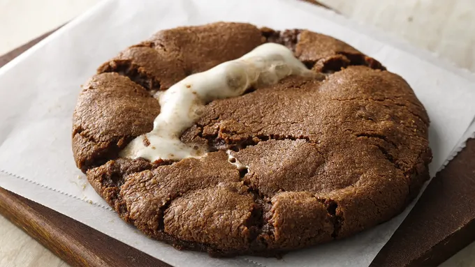 Bake 12 to 15 minutes or until surface of cookie appears cracked and marshmallow shows through. Cool 5 minutes; remove from cookie sheets to cooling racks. Serve warm or cool. Store tightly covered.