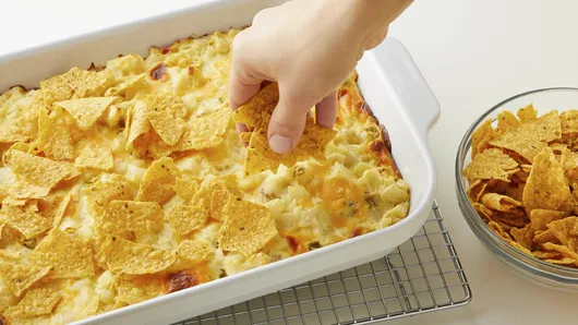 Step aside, plain ol’ potatoes! This cheesy potato casserole feeds a family (and then some!) with more flavor per square inch than your 13x9 has ever seen. A tortilla chip topping yields a crunchy-creamy texture you won’t be able to resist, and chopped green chiles, cool sour cream, zippy jalapeño peppers and loads of cheese take these Mexican-inspired potatoes to the next level.