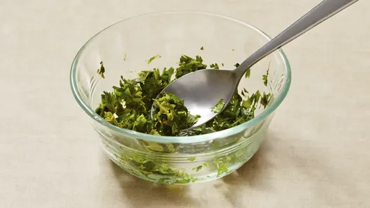 Step3In medium bowl, mix remaining 1 teaspoon lime juice, remaining cilantro, cheese, mayonnaise, chili powder and corn until combined. Spoon 1 slightly rounded tablespoon mixture into each cup.