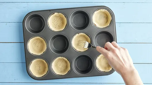 Step2Fit crusts into 14 ungreased regular-size muffin cups, pressing firmly against sides and bottoms. Prick bottom of each crust with fork.