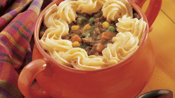 var configuration = {"title":"Mini Shepherd\u0027s Pot Pies","introduction":"\u003cp\u003eShepherd\u0027s pot pies…but make it mini!\u003c/p\u003e\u003cp\u003eEverything is cuter when it’s small, including pot pie. These individual servings are as adorable as they are delicious, and they’re super simple to make. Plus, with individual servings, each person gets the perfect crust-to-filling ratio in every bite.\u003c/p\u003e\u003cp\u003eThese Mini Shepherd\u0027s Pot Pies come together quickly with simple, common ingredients. Our secret? Pillsbury™ Pie Crusts. These crusts are easy to work with and make the hardest part of the recipe easy as pie (pun intended).\u003c/p\u003e\u003cp\u003eTry a cozy, classic meal for your family tonight! This kid-approved comfort-food meal is as easy and delicious as it gets.\u003c/p\u003e","servingSize":"1 Pot Pie","image":{"small":{"media":"(min-width: 0px)","src":"https://mojo.generalmills.com/api/public/content/5MWRsORgRyygTIJOJRzZcQ_webp_base.webp?v=9b86b6a9\u0026t=e724eca7b3c24a8aaa6e089ed9e611fd"},"medium":{"media":"(min-width: 500px)","src":"https://mojo.generalmills.com/api/public/content/5MWRsORgRyygTIJOJRzZcQ_webp_base.webp?v=9b86b6a9\u0026t=191ddcab8d1c415fa10fa00a14351227"},"large":{"media":"(min-width: 767px)","src":"https://mojo.generalmills.com/api/public/content/5MWRsORgRyygTIJOJRzZcQ_webp_base.webp?v=9b86b6a9\u0026t=191ddcab8d1c415fa10fa00a14351227"},"alt":"Mini Shepherd\u0027s Pot Pies"},"contributor":{"label":"By","name":"Pillsbury Kitchens","profileUrl":"/about-us","displayDate":{"label":"Updated","date":"Nov 4, 2025"}},"ingredientGroups":[{"ingredients":[{"quantity":"1","description":"box (14.1 oz) refrigerated Pillsbury™ Pie Crusts (2 Count), softened as directed on box","productLink":"/products/pie-crust/refrigerated-pie-crust"},{"quantity":"1/2","description":"lb ground beef (at least 80% lean)"},{"quantity":"1","description":"small onion, chopped (1/2 cup)"},{"quantity":"4","description":"teaspoons all-purpose flour"},{"quantity":"3/4","description":"cup Progresso™ Classic Beef Broth (from 32-oz carton)"},{"quantity":"1/2","description":"teaspoon salt "},{"quantity":"1/8","description":"teaspoon pepper "},{"quantity":"1 1/2","description":"cups frozen mixed vegetables"},{"quantity":"1","description":"package (24 oz) refrigerated mashed potatoes (about 3 cups)"}]}],"steps":[{"description":"\u003cp\u003eHeat oven to 375°F. Unroll pie crusts. On lightly floured surface, roll or press each crust to 12-inch diameter. Using 4-inch round cutter, cut 6 rounds from each crust.\u003c/p\u003e","stepShotImageUrl":"//mojo.generalmills.com/api/public/content/o4s8udjrRayXsh8RTbJafg_webp_base.webp?v=ebfe5fd8\u0026t=51a43a57af4046789e5a7f20567b1195"},{"description":"\u003cp\u003eGently press rounds floured-side-down in bottoms and up sides of 12 ungreased regular-size muffin cups. Bake 9 to 11 minutes or until lightly browned.\u003c/p\u003e","stepShotImageUrl":"//mojo.generalmills.com/api/public/content/VH2VIGRGSBycN3AhmLOBxQ_webp_base.webp?v=444fe6be\u0026t=51a43a57af4046789e5a7f20567b1195"},{"description":"\u003cp\u003eMeanwhile, in 12-inch nonstick skillet, cook beef and onion over medium-high heat, stirring frequently, about 5 minutes or until beef is thoroughly cooked; drain. Stir in flour until blended.\u003c/p\u003e","stepShotImageUrl":"//mojo.generalmills.com/api/public/content/v5WaqgxfSlqLvyDYzVY0yg_webp_base.webp?v=789b93b1\u0026t=51a43a57af4046789e5a7f20567b1195"},{"description":"\u003cp\u003eAdd broth, salt, and pepper. Cook about 2 minutes or until mixture thickens. Stir in frozen mixed vegetables.\u003c/p\u003e","stepShotImageUrl":"//mojo.generalmills.com/api/public/content/dZ61UIwNTG-U9IG0xcpXhQ_webp_base.webp?v=ba4fad99\u0026t=51a43a57af4046789e5a7f20567b1195"},{"description":"\u003cp\u003eFill each muffin cup with about 1/4 cup beef mixture.\u003c/p\u003e","stepShotImageUrl":"//mojo.generalmills.com/api/public/content/7oabU__kQpeCblPvx0f9JQ_webp_base.webp?v=e549c502\u0026t=51a43a57af4046789e5a7f20567b1195"},{"description":"\u003cp\u003eTop each with slightly less than 2 tablespoons potatoes. Bake 20 to 25 minutes or until potatoes are lightly browned.\u003c/p\u003e","stepShotImageUrl":"//mojo.generalmills.com/api/public/content/puSUDGvLQyG-7stgfP90PQ_webp_base.webp?v=f81572c6\u0026t=51a43a57af4046789e5a7f20567b1195"}],"tips":[{"title":"","description":"A comforting, cozy, kid-approved dinner that the whole family will love. These mini shepherd\u0027s pot pies make a classic dish fun to make and eat.","category":"Rich Snippet","tipShots":[]},{"title":"","description":"Make your own mashed potatoes using instant mashed potatoes. ","category":"Substitution","tipShots":[]},{"title":"","description":"If you don’t have a 4-inch round cutter, find a small plate you can cut around using a small knife.","category":"Techniques","tipShots":[]},{"title":"","description":"Sprinkle with chopped parsley after baking.","category":"Presentation/Garnish","tipShots":[]},{"title":"","description":"Recipe meets Kitchen Tested criteria. Reviewed as part of SEO improvements Oct. 2019.","category":"Kitchen Tested","tipShots":[]}],"kitchenTips":[{"title":"","description":"Make your own mashed potatoes using instant mashed potatoes. ","category":"Substitution","tipShots":[]},{"title":"","description":"If you don’t have a 4-inch round cutter, find a small plate you can cut around using a small knife.","category":"Techniques","tipShots":[]},{"title":"","description":"Sprinkle with chopped parsley after baking.","category":"Presentation/Garnish","tipShots":[]}],"additionalContent":[{"title":"Recipe Ingredients","description":"\u003cp\u003eYou can make these Mini Shepherd\u0027s Pot Pies with just a few convenient ingredients.\u003c/p\u003e\u003cp\u003e\u003cstrong\u003ePillsbury™ Pie Crusts: \u003c/strong\u003eThese crusts make a simple base for your pot pies and are easy to work with, making the recipe ultra-convenient.\u003c/p\u003e\u003cp\