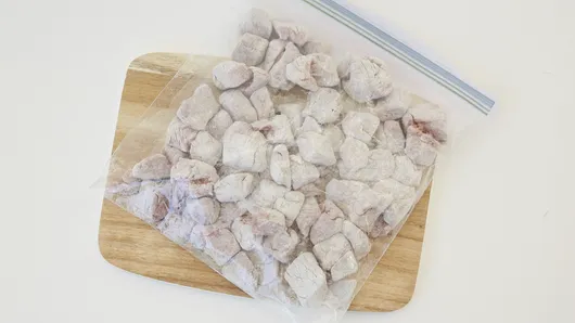 Step1Heat oven to 350°F. Place beef pieces in large resealable food-storage plastic bag. Add flour; close bag, and shake until evenly coated.