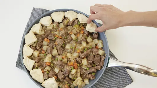 We’re reinventing the Mississippi roast that’s taken the internet by storm! Our speedy makeover turns it into an all-in-one dinner recipe that’s made on the stovetop and topped with flaky biscuits.