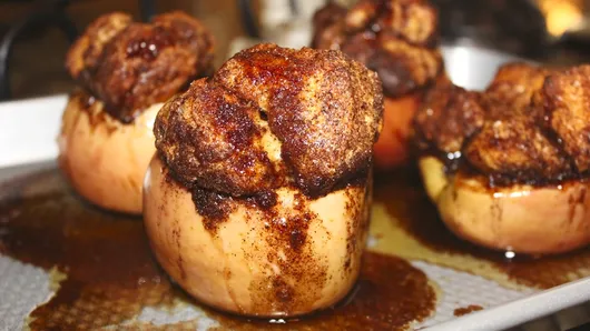 Monkey bread is even better when it's stuffed inside fresh apples, baked to a golden brown and drizzled with icing.