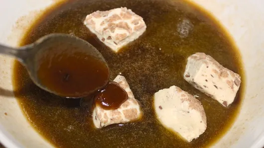 Step3Separate Pillsbury™ Cinnamon Rolls with Original Icing into 8 rolls. Set icing aside. Cut each cinnamon roll into 4 equal pieces. In medium bowl, mix 1/4 cup melted butter and 1/2 cup packed brown sugar. Toss each cinnamon roll piece in butter mixture.