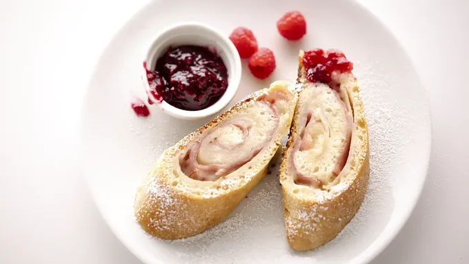 Classic Monte Cristos are updated for two with waffles sauteed until golden brown and layered with cheese, ham and turkey.