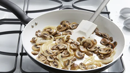 Step1In 12-inch skillet, add drippings. Add mushrooms and onions to skillet; cook over medium-high heat 2 to 3 minutes, stirring constantly, until liquid has been released from mushrooms and they start to brown.