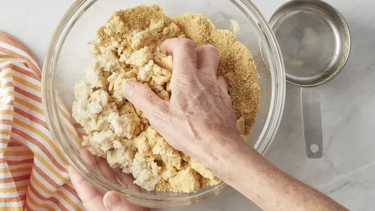 Step1Let cookie dough stand at room temperature 10 to 15 minutes to soften. In large bowl, knead or stir softened cookie dough with graham cracker crumbs until combined.