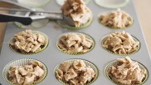 Step4Use big scoop to divide cereal mixture into muffin cups. Cool completely, about 30 minutes.