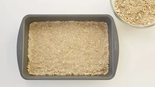 Step1Heat oven to 350°F. Grease 13x9-inch pan. Lightly spoon flour into measuring cup; level off. In large bowl, combine all crust ingredients; mix at low speed until crumbly. Reserve half of crumb mixture (about 3 cups) for topping. Press remaining crumb mixture in bottom of greased pan. Bake at 350°F. for 10 minutes.
