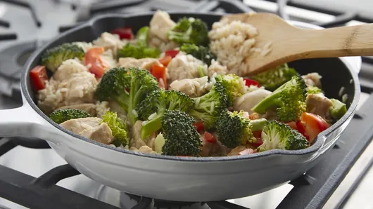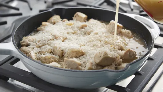 var configuration = {"title":"One-Pot Cheesy Chicken, Rice and Broccoli","introduction":"Even those who are members of the “I don’t like broccoli” crowd will find themselves asking for seconds of this irresistible chicken and broccoli recipe; no one can say no to the cheesy, chicken and rice combo. And with just 10 minutes of prep time, this dinner is ready on the double.","servingSize":"1 Serving","image":{"small":{"media":"(min-width: 0px)","src":"https://mojo.generalmills.com/api/public/content/jmxTRzVao0-gY5UTw1zhEg_webp_base.webp?v=f90104b1\u0026t=e724eca7b3c24a8aaa6e089ed9e611fd"},"medium":{"media":"(min-width: 500px)","src":"https://rms-media-prod.generalmills.com/d0513290-e00f-4eff-ba4c-5b0262d5729c.jpg"},"large":{"media":"(min-width: 767px)","src":"https://rms-media-prod.generalmills.com/d0513290-e00f-4eff-ba4c-5b0262d5729c.jpg"},"alt":"One-Pot Cheesy Chicken, Rice and Broccoli"},"contributor":{"label":"By","name":"Pillsbury Kitchens","profileUrl":"/about-us","displayDate":{"label":"Updated","date":"Jun 13, 2019"}},"ingredientGroups":[{"ingredients":[{"quantity":"2","description":"tablespoons olive oil"},{"quantity":"4","description":"boneless skinless chicken breasts, cut into 1-inch pieces (20 oz)"},{"quantity":"1","description":"teaspoon salt"},{"quantity":"1/4","description":"teaspoon pepper"},{"quantity":"1","description":"cup uncooked regular long-grain white rice"},{"quantity":"2 1/2","description":"cups Progresso™ chicken broth (from 32-oz carton)"},{"quantity":"1","description":"cup chopped red bell pepper (1 large)"},{"quantity":"2 1/2","description":"cups broccoli florets, cut into bite-size pieces"},{"quantity":"2","description":"cups shredded cheddar cheese (8 oz)"}]}],"steps":[{"description":"In 12-inch nonstick skillet, heat oil over medium-high heat. Cook chicken, salt and pepper in oil 4 to 6 minutes, stirring frequently, until chicken is no longer pink in center.","stepShotImageUrl":"//mojo.generalmills.com/api/public/content/AW4k_puoCUirDGT4JkDaIw_webp_base.webp?v=fd66b83e\u0026t=51a43a57af4046789e5a7f20567b1195"},{"description":"Add rice and chicken broth; heat to boiling. Cook over medium-high heat 10 to 15 minutes, stirring frequently, until most of the liquid is absorbed. ","stepShotImageUrl":"//mojo.generalmills.com/api/public/content/VkhoNtZ4NEmSJOiIkFkklQ_webp_base.webp?v=03f72efe\u0026t=51a43a57af4046789e5a7f20567b1195"},{"description":"Add bell pepper, broccoli and 1 cup of the cheese. Cover; reduce heat to medium-low; cook 8 to 10 minutes or until vegetables are crisp-tender. Remove from heat.","stepShotImageUrl":"//mojo.generalmills.com/api/public/content/e2pYYTMoIEKIfFBhRLoucA_webp_base.webp?v=82abbabe\u0026t=51a43a57af4046789e5a7f20567b1195"},{"description":"Sprinkle with remaining 1 cup cheese. Cover; let stand 1 to 2 minutes or until cheese is melted."}],"tips":[{"title":"","description":"You will note that this recipe calls for long-grain white rice, and it’s important that you use this kind of rice. There are many different varieties of rice out there—in fact, rice is one of the oldest, most commonly used grains in the world. There’s white rice, brown rice, jasmine rice, basmati rice, Arborio rice and more. White rice itself can be categorized into a few different types: long-grain rice, medium-grain rice and short-grain rice. Long-grain rice is ideal for recipes like this one-pot chicken dinner. It cooks up separated and fluffy, helping to complement and stretch meals. You may be tempted to use instant white rice in this recipe, but don’t! The texture and consistency just won’t be the same. Instant white rice is ready in about five minutes, while long-grain white rice takes about 15 minutes to cook, which matches the instructions in this recipe. Rice is extremely versatile, and the perfect companion to \u003ca href=\u0022https://www.pillsbury.com/recipes/ingredient/chicken\u0022 target=\u0022_blank\u0022\u003echicken\u003c/a\u003e. There are many more chicken and rice recipes you can make after you try this one, including (but not limited!) to cheesy chicken and rice casseroles, instant pot chicken and rice dinners and more.","category":"Editorial","tipShots":[]},{"title":"","description":"Recipe meets Kitchen Tested criteria. Reviewed as part of project MSO-5941 BC Audit 200 recipes","category":"Kitchen Tested","tipShots":[]},{"title":"","description":"Toss some chopped fresh parsley or sliced green onions with the last bit of cheese to garnish the finished food before serving.","category":"Presentation/Garnish","tipShots":[]},{"title":"","description":"A long-grain white rice or converted white rice is an excellent quick-cooking grain for this skillet dinner, but be sure not to use instant rice; it will lose its texture when cooked.","category":"Recipe/Ingredient Facts","tipShots":[]},{"title":"","description":"Having all ingredients prepped and ready to go helps make one-skillet dinners a snap to put together.","category":"Techniques","tipShots":[]},{"title":"","description":"Shortcut your prep by buying a bag of fresh broccoli florets in the produce department or at the salad bar. You can switch things up by using a combo of vegetables your family likes—broccoli + cauliflower, shredded Brussels sprouts + cubed butternut squash, or sugar snap peas + chopped rainbow bell peppers would all blend well with the chicken and rice. Cooking time may vary since vegetables cook at different rates so be sure to check tenderness of the vegetables.","category":"Variation","tipShots":[]}],"kitchenTips":[{"title":"","description":"Toss some chopped fresh parsley or sliced green onions with the last bit of cheese to garnish the finished food before serving.","category":"Presentation/Garnish","tipShots":[]},{"title":"","description":"A long-grain white rice or converted white rice is an excellent quick-cooking grain for this skillet dinner, but be sure not to use instant rice; it will lose its texture when cooked.","category":"Recipe/In