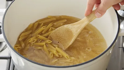 Add water, pasta, salt and pepper; heat to boiling. Simmer uncovered 11 to 12 minutes, stirring occasionally, until pasta is al dente and most of liquid is absorbed.