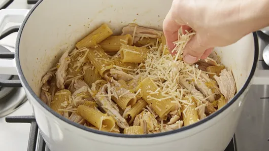 Step3Stir in chicken; continue heating 1 to 2 minutes or until heated through. Remove from heat; stir in grated lemon peel, and top with Parmesan cheese. Garnish with chopped fresh basil.