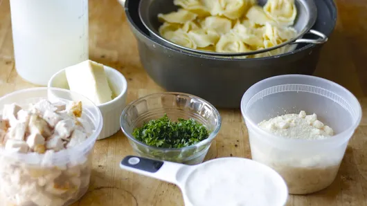 Step1Cook 1 package (12 oz) refrigerated cheese-filled tortellini as directed on package, reserving 1 cup of the cooking water when draining. Set cooked pasta aside.