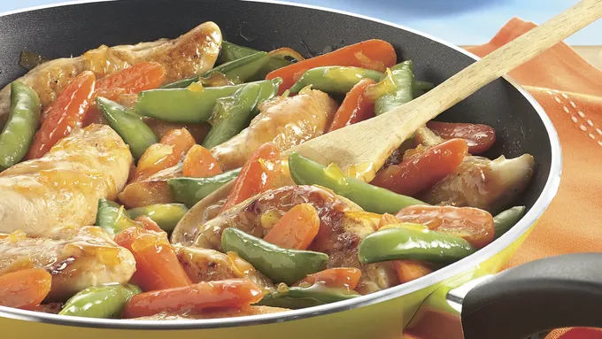 Orange juice and spices blend perfectly in this chicken and vegetable delight.