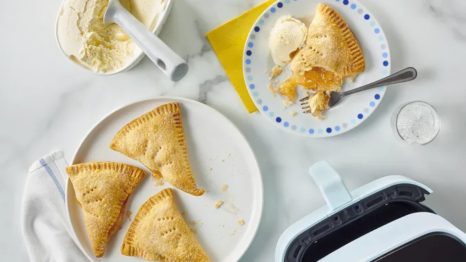 var configuration = {"title":"Oven-Fried Apple Pies","introduction":"Make a new kind of apple pie tradition with our Oven-Fried Apple Pies! This tasty twist on a classic fall dessert is sure to become a new family favorite. Our biscuit apple pies use just five ingredients and are ready to eat in four simple steps! That\u0027s right, this recipe really is easy as pie!","servingSize":"1 Pie","image":{"small":{"media":"(min-width: 0px)","src":"https://mojo.generalmills.com/api/public/content/K8o_3UmdPkKY7YgI8BaJCA_webp_base.webp?v=7b1ac0d1\u0026t=e724eca7b3c24a8aaa6e089ed9e611fd"},"medium":{"media":"(min-width: 500px)","src":"https://mojo.generalmills.com/api/public/content/K8o_3UmdPkKY7YgI8BaJCA_webp_base.webp?v=7b1ac0d1\u0026t=191ddcab8d1c415fa10fa00a14351227"},"large":{"media":"(min-width: 767px)","src":"https://mojo.generalmills.com/api/public/content/K8o_3UmdPkKY7YgI8BaJCA_webp_base.webp?v=7b1ac0d1\u0026t=191ddcab8d1c415fa10fa00a14351227"},"alt":"Oven-Fried Apple Pies"},"contributor":{"label":"By","name":"Pillsbury Kitchens","profileUrl":"/about-us","displayDate":{"label":"Updated","date":"Sep 20, 2021"}},"ingredientGroups":[{"ingredients":[{"quantity":"1","description":"tablespoon sugar"},{"quantity":"1/4","description":"teaspoon cinnamon "},{"quantity":"1","description":"can (16.3 oz) refrigerated Pillsbury™ Grands!™ Southern Homestyle Butter Tastin\u0027™ Biscuits (8 Count)","productLink":"/products/biscuits/grands-refrigerated-biscuits/southern-homestyle-butter-tastin-5ct"},{"quantity":"1","description":"cup cinnamon and spice apple pie filling and topping (from 21-oz. resealable can)"},{"quantity":"4","description":"teaspoons butter, melted"}]}],"steps":[{"description":"Heat oven to 375°F. Spray 2 cookie sheets with nonstick cooking spray. In small bowl, combine sugar and cinnamon. Set aside. ","stepShotImageUrl":"//mojo.generalmills.com/api/public/content/bWr3bVgNOkeWd_W7uqjzvA_webp_base.webp?v=2600ce4e\u0026t=51a43a57af4046789e5a7f20567b1195"},{"description":"Separate dough into 8 biscuits. Press or roll each to form 5-inch round. Place on sprayed cookie sheets.","stepShotImageUrl":"//mojo.generalmills.com/api/public/content/MHLuBUfN80uV8TBlSo4ycg_webp_base.webp?v=de1459fc\u0026t=51a43a57af4046789e5a7f20567b1195"},{"description":"Place 2 tablespoons pie filling slightly off center on each biscuit round on one cookie sheet. Fold biscuits over filling; press edges with fork to seal. Prick top of each 3 times with fork. Brush each with melted butter; sprinkle with sugar mixture.","stepShotImageUrl":"//mojo.generalmills.com/api/public/content/VdczQcaVcU6YI0RDnHFOVA_webp_base.webp?v=e76d548d\u0026t=51a43a57af4046789e5a7f20567b1195"},{"description":"Bake at 375°F. for 15 to 20 minutes or until deep golden brown. (Some filling may bubble out at edges.) Repeat with biscuit rounds on second cookie sheet. Immediately remove from cookie sheets. Cool 5 minutes before serving. Serve warm."}],"tips":[{"title":"","description":"If you haven’t tried fried apple pies, you don’t know what you’re missing! Although these apple pies are baked in the oven rather than deep fried, the concept remains the same: fill delicious dough with apple pie filling and top with a dusting of cinnamon-sugar. You likely have either made or enjoyed an apple pie like this before, but perhaps you know it by a different name! These personal-size pies are similar to apple pie empanadas, a Mexican dessert featuring a flaky crust, sweet filling and cinnamon-sugar coating. You may have also heard of these delightful desserts by the name “hand pies.” \r\n\r\nThis is one of our favorite ways to eat \u003ca href=\u0022https://www.pillsbury.com/recipes/dish-type/pies/apple\u0022\u003eapple pie\u003c/a\u003e because they can be made in a big batch and then enjoyed all week long as a quick dessert or after-school snack. Like we said, this is ONE of our favorite ways to enjoy apple pie—we have a few others in our \u003ca href=\u0022https://www.pillsbury.com/recipes/dish-type/pies/apple\u0022\u003eguide that will teach you how to make the perfect classic apple pie\u003c/a\u003e as well as how to put a few twists on the traditional recipe!","category":"Editorial","tipShots":[]},{"title":"","description":"Recipe meets Kitchen Tested criteria. Reviewed as part of SEO improvements Oct. 2019.","category":"Kitchen Tested","tipShots":[]},{"title":"","description":"Use remaining apple pie filling for an ice cream topping or favorite dessert.","category":"Variation","tipShots":[]},{"title":"","description":"It’s handy to keep a kitchen ruler nearby, so you can make sure your dough circles turn out the right size.","category":"Techniques","tipShots":[]},{"title":"","description":"For easier clean-up, line cookie sheets with cooking parchment paper and spray with cooking spray.","category":"Techniques","tipShots":[]}],"kitchenTips":[{"title":"","description":"Use remaining apple pie filling for an ice cream topping or favorite dessert.","category":"Variation","tipShots":[]},{"title":"","description":"It’s handy to keep a kitchen ruler nearby, so you can make sure your dough circles turn out the right size.","category":"Techniques","tipShots":[]},{"title":"","description":"For easier clean-up, line cookie sheets with cooking parchment paper and spray with cooking spray.","category":"Techniques","tipShots":[]}],"additionalContent":[],"faq":[],"tipCategories":[{"categoryName":"Editorial","heading":"More About This Recipe","cssClass":"recipePartStory","expandOnInit":false,"expandText":"More +","collapseText":"Less -","expandEventName":"","collapseEventName":"","image":"","tips":[{"title":"","description":"If you haven’t tried fried apple pies, you don’t know what you’re missing! Although these apple pies are baked in the oven rather than deep fried, the concept remains the same: fill delicious dough with apple pie filling and top with a dusting of cinnamon-sugar. You likely have either made or enjoyed an apple pie lik