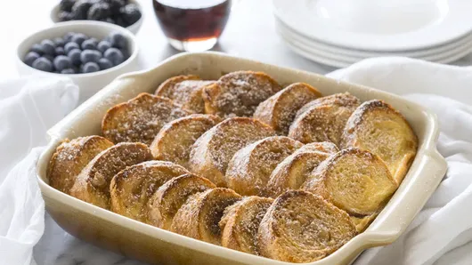 Make French toast the easy way—by prepping it the night before and baking it all at once! This Overnight French Toast Bake eliminates prep time in the morning, allowing you to simply pop your dish in the oven and fill the house with decadent smells. We love to bake French toast because it comes out perfectly toasted on the outside and deliciously soft and fluffy on the inside. Pull out this Overnight French Toast Bake recipe whenever you want breakfast or brunch.
