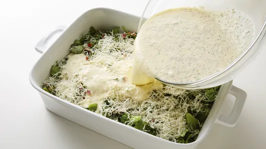 var configuration = {"title":"Overnight Veggie Lover’s Breakfast Casserole","introduction":"Can\u0027t get enough veggies in your life? This veggie breakfast casserole recipe was made for you. Loaded with fresh vegetables, including broccoli, mushrooms, spinach, bell pepper and green onions, plus melty cheese and flavorful seasonings, this Overnight Veggie Lovers Breakfast Casserole is nothing short of spectacular. We love that you can prep this dish ahead of time and bake it the next morning, leaving you plenty of time to get on with your morning routine while your house fills with yummy smells. Your easy veggie breakfast casserole will be ready to serve before you know it!","servingSize":"1 Serving","image":{"small":{"media":"(min-width: 0px)","src":"https://mojo.generalmills.com/api/public/content/Y21Q3k4ZA0GEV9bPYkKLCw_webp_base.webp?v=2864630d\u0026t=e724eca7b3c24a8aaa6e089ed9e611fd"},"medium":{"media":"(min-width: 500px)","src":"https://mojo.generalmills.com/api/public/content/Y21Q3k4ZA0GEV9bPYkKLCw_webp_base.webp?v=2864630d\u0026t=191ddcab8d1c415fa10fa00a14351227"},"large":{"media":"(min-width: 767px)","src":"https://mojo.generalmills.com/api/public/content/Y21Q3k4ZA0GEV9bPYkKLCw_webp_base.webp?v=2864630d\u0026t=191ddcab8d1c415fa10fa00a14351227"},"alt":"Overnight Veggie Lover’s Breakfast Casserole"},"contributor":{"label":"By","name":"Pillsbury Kitchens","profileUrl":"/about-us","displayDate":{"label":"Updated","date":"Feb 15, 2022"}},"ingredientGroups":[{"ingredients":[{"quantity":"3","description":"cups finely shredded Italian cheese blend (12 oz)"},{"quantity":"3","description":"tablespoons butter"},{"quantity":"2","description":"cups coarsely chopped fresh broccoli"},{"quantity":"1","description":"cup sliced fresh mushrooms"},{"quantity":"1","description":"clove garlic, finely chopped"},{"quantity":"3","description":"cups fresh baby spinach, chopped (from 5-oz package)"},{"quantity":"1/2","description":"cup chopped red bell pepper"},{"quantity":"1/4","description":"cup chopped green onions"},{"quantity":"8","description":"eggs"},{"quantity":"1 3/4","description":"cups half-and-half"},{"quantity":"1/4","description":"cup all-purpose flour"},{"quantity":"1/2","description":"teaspoon Italian seasoning"},{"quantity":"1/2","description":"teaspoon salt"},{"quantity":"1/4","description":"teaspoon black pepper"}]}],"steps":[{"description":"Spray 13x9-inch (3-quart) baking dish with cooking spray. Sprinkle 2 cups of the cheese evenly in bottom of baking dish."},{"description":"In 12-inch nonstick skillet, melt butter. Add broccoli, mushrooms and garlic; cook over medium heat 3 to 4 minutes or until broccoli is crisp-tender. Cool 5 minutes. Stir in spinach, bell pepper and green onions until well mixed. Spoon evenly onto cheese. Sprinkle with remaining 1 cup cheese. Set aside.","stepShotImageUrl":"//mojo.generalmills.com/api/public/content/ecH9F4dHSEO23fCyrbrcxA_webp_base.webp?v=f18cd2ce\u0026t=51a43a57af4046789e5a7f20567b1195"},{"description":"In large bowl, beat eggs, half-and-half, flour, Italian seasoning, salt and pepper until well blended. Pour egg mixture evenly over cheese and vegetable mixture in baking dish. Cover; refrigerate 8 hours or overnight.","stepShotImageUrl":"//mojo.generalmills.com/api/public/content/tT_Sm4YD3U6gwph119j7Sg_webp_base.webp?v=f8fa2b39\u0026t=51a43a57af4046789e5a7f20567b1195"},{"description":"Heat oven to 350°F. Uncover baking dish; bake 33 to 38 minutes or until knife inserted in center comes out clean. Let stand 10 minutes before serving. Cover and refrigerate leftovers."}],"tips":[{"title":"","description":"Swap finely shredded Italian cheese blend for your favorite variety, such as cheddar.","category":"Substitution","tipShots":[]},{"title":"","description":"Don\u0027t want to wait overnight? You can also bake this veggie-loaded breakfast casserole right away. Bake at 350°F for 35 to 40 minutes or until a knife inserted in the center comes out clean.","category":"Recipe/Ingredient Facts","tipShots":[]},{"title":"","description":"To give this veggie breakfast casserole even more fresh flavor, top baked casserole with 3 tablespoons sliced fresh basil leaves.","category":"Serving Suggestions/Menu","tipShots":[]},{"title":"","description":"Serve this make-ahead veggie breakfast casserole with fresh fruit and Pillsbury™ Grands!™ Biscuits or Pillsbury™ Cinnamon Rolls.","category":"Serving Suggestions/Menu","tipShots":[]},{"title":"","description":"Rise and shine! We have plenty of \u003ca href=\u0022https://www.pillsbury.com/recipes/meal-course/breakfast-and-brunch/overnight-breakfasts\u0022 target=\u0022_blank\u0022\u003eovernight breakfast recipes\u003c/a\u003e that will make you want to get out of bed in the morning.\n","category":"Editorial","tipShots":[]},{"title":"","description":"Kitchen Tested - August 2019","category":"Kitchen Tested","tipShots":[]}],"kitchenTips":[{"title":"","description":"Swap finely shredded Italian cheese blend for your favorite variety, such as cheddar.","category":"Substitution","tipShots":[]},{"title":"","description":"Don\u0027t want to wait overnight? You can also bake this veggie-loaded breakfast casserole right away. Bake at 350°F for 35 to 40 minutes or until a knife inserted in the center comes out clean.","category":"Recipe/Ingredient Facts","tipShots":[]},{"title":"","description":"To give this veggie breakfast casserole even more fresh flavor, top baked casserole with 3 tablespoons sliced fresh basil leaves.","category":"Serving Suggestions/Menu","tipShots":[]},{"title":"","description":"Serve this make-ahead veggie breakfast casserole with fresh fruit and Pillsbury™ Grands!™ Biscuits or Pillsbury™ Cinnamon Rolls.","category":"Serving Suggestions/Menu","tipShots":[]}],"additionalContent":[],"faq":[],"tipCategories":[{"categoryName":"Editorial","heading":"More About This Recipe","cssClass":"recipePartStory","expandOnInit":false,"expandText":"More +","collapseText":"Less -","expandEventName":"","