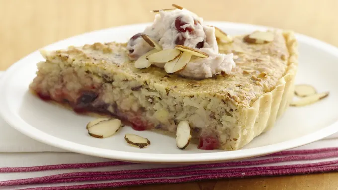 Step4Place tart on preheated cookie sheet in oven; bake 35 to 40 minutes or until crust is golden brown and center is set. After 15 to 20 minutes of baking, cover tart loosely with sprayed foil to prevent excessive browning. Cool completely, about 1 1/2 hours. Serve at room temperature or chilled, plain or with whipped cream. Store in refrigerator.