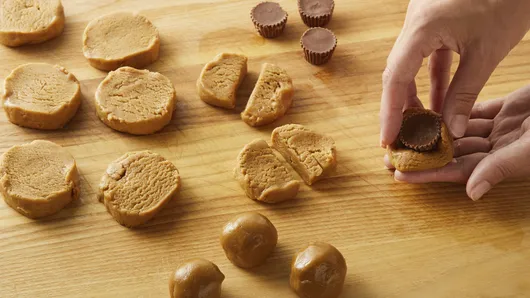var configuration = {"title":"Peanut Butter Cup-Stuffed Snowball Cookies","introduction":"You only need three simple ingredients to bring these peanut butter cup-stuffed snowballs to life! Miniature peanut butter cups are wrapped in Pillsbury™ peanut butter cookie dough, rolled in powdered sugar and baked into an irresistible holiday treat with a surprise filling everyone will love.","servingSize":"1 Cookie","image":{"small":{"media":"(min-width: 0px)","src":"https://mojo.generalmills.com/api/public/content/V-Cf-yHjjkSwSZ7Z6ktzWA_webp_base.webp?v=ebe121bb\u0026t=e724eca7b3c24a8aaa6e089ed9e611fd"},"medium":{"media":"(min-width: 500px)","src":"https://mojo.generalmills.com/api/public/content/V-Cf-yHjjkSwSZ7Z6ktzWA_webp_base.webp?v=ebe121bb\u0026t=191ddcab8d1c415fa10fa00a14351227"},"large":{"media":"(min-width: 767px)","src":"https://mojo.generalmills.com/api/public/content/V-Cf-yHjjkSwSZ7Z6ktzWA_webp_base.webp?v=ebe121bb\u0026t=191ddcab8d1c415fa10fa00a14351227"},"alt":"Peanut Butter Cup-Stuffed Snowball Cookies"},"contributor":{"label":"By","name":"Pillsbury Kitchens","profileUrl":"/about-us","displayDate":{"label":"Updated","date":"Aug 27, 2019"}},"ingredientGroups":[{"ingredients":[{"quantity":"1","description":"roll (16.5 oz) refrigerated Pillsbury™ Peanut Butter Cookie Dough","productLink":"/products/cookies/refrigerated-cookies/peanut-butter"},{"quantity":"24","description":"miniature chocolate-covered peanut butter cup candies, unwrapped (from 40-oz bag)"},{"quantity":"1/2","description":"cup powdered sugar"}]}],"steps":[{"description":"Heat oven to 350°F."},{"description":"Cut roll of dough into 12 slices. Cut each slice in half crosswise to make 24 pieces. Shape dough around 1 candy, covering completely (refrigerated remaining dough pieces, if necessary). Repeat with remaining dough and candies; roll in 1/4 cup of the powdered sugar. Place 2 inches apart on ungreased cookie sheets.","stepShotImageUrl":"//mojo.generalmills.com/api/public/content/8gCj9Buf2UOXSMeKmBZj4g_webp_base.webp?v=372f7e66\u0026t=51a43a57af4046789e5a7f20567b1195"},{"description":"Bake 10 to 13 minutes or until edges are golden brown. Cool 1 minute; remove from cookie sheets to cooling racks. Cool 5 minutes. Dip top of each cookie in remaining 1/4 cup powdered sugar. Cool completely, about 30 minutes.","stepShotImageUrl":"//mojo.generalmills.com/api/public/content/oQbsNvWGCEStSOTuNH5e9Q_webp_base.webp?v=9e634024\u0026t=51a43a57af4046789e5a7f20567b1195"}],"tips":[{"title":"","description":"Kids will love to help wrap the cookie dough around the miniature peanut butter cups!","category":"Family/Kids","tipShots":[]},{"title":"","description":"For best results, bake cookies one sheet at a time on the center oven rack.","category":"Techniques","tipShots":[]},{"title":"","description":"Store cookies in an airtight container in single layers between parchment or waxed paper at room temperature up to 2 days. Cookies can be frozen up to 2 months. To thaw, let stand uncovered at room temperature 1 to 2 hours.","category":"Storage","tipShots":[]},{"title":"","description":"Can\u0027t get enough cookies? We have plenty of \u003ca href=\u0022https://www.pillsbury.com/recipes/dish-type/cookies/christmas\u0022 target=\u0022_blank\u0022\u003eChristmas Cookie\u003c/a\u003e recipes for you to choose from!","category":"Editorial","tipShots":[]},{"title":"","description":"Kitchen Tested - 7/2019","category":"Kitchen Tested","tipShots":[]}],"kitchenTips":[{"title":"","description":"Kids will love to help wrap the cookie dough around the miniature peanut butter cups!","category":"Family/Kids","tipShots":[]},{"title":"","description":"For best results, bake cookies one sheet at a time on the center oven rack.","category":"Techniques","tipShots":[]},{"title":"","description":"Store cookies in an airtight container in single layers between parchment or waxed paper at room temperature up to 2 days. Cookies can be frozen up to 2 months. To thaw, let stand uncovered at room temperature 1 to 2 hours.","category":"Storage","tipShots":[]}],"additionalContent":[],"faq":[],"tipCategories":[{"categoryName":"Editorial","heading":"More About This Recipe","cssClass":"recipePartStory","expandOnInit":false,"expandText":"More +","collapseText":"Less -","expandEventName":"","collapseEventName":"","image":"","tips":[{"title":"","description":"Can\u0027t get enough cookies? We have plenty of \u003ca href=\u0022https://www.pillsbury.com/recipes/dish-type/cookies/christmas\u0022 target=\u0022_blank\u0022\u003eChristmas Cookie\u003c/a\u003e recipes for you to choose from!","category":"Editorial","tipShots":[]}],"isExpandable":false},{"categoryName":"Kitchen Tested","heading":"More About This Recipe","cssClass":"recipePartStory","expandOnInit":false,"expandText":"More +","collapseText":"Less -","expandEventName":"","collapseEventName":"","image":"","tips":[{"title":"","description":"Kitchen Tested - 7/2019","category":"Kitchen Tested","tipShots":[]}],"isExpandable":false}],"nutritionInfo":{"configuration":{"showAsTable":false,"noNutritionInformationAvailableMessage":"No nutrition information available for this recipe","poweredByText":"\u003cp\u003eNutrition information for this recipe is estimated using a leading nutrition calculation application, but is an estimate only. Actual nutrition values will vary based on the exact ingredients or brands you may use.\u003c/p\u003e\n\u003ca href=\u0022http://developer.edamam.com\u0022\u003ePowered By \u003cimg src=\u0022-/media/C4F33FD467AB4A3AB59AAC4F6306AB04.ashx\u0022 alt=\u0022Edamam\u0022 /\u003e\u003c/a\u003e","nutritionChartTitle":"Nutrition Facts","nutritionInformationLabel":"Nutrition","servingSizeText":"Serving Size:","dailyValuesDisclaimer":"*Percent Daily Values are based on a 2,000 calorie diet.","percentDailyValueText":"% Daily Value","percentDailyValueFooterTitleText":"% Daily Value*:","exchangeInformationTitleText":"Exchanges:","nutritionFactsExpandText":"More Nutrition","nutritionFactsCollapseText