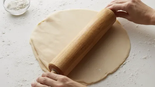 Step1Heat oven to 450°F. Remove pie crusts from pouches. On lightly floured surface, unroll and stack crusts one on top of the other. Roll to 17x12-inch rectangle.