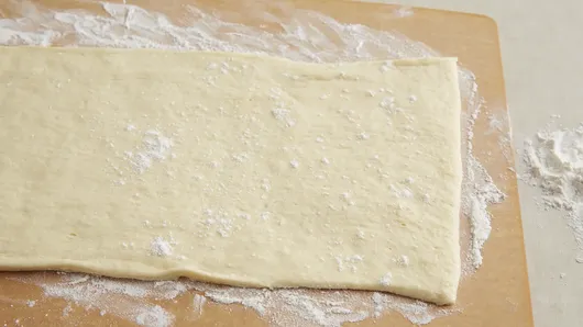 Step1Heat oven to 375°F. Unroll pizza crust on work surface sprinkled lightly with flour. Straighten edges, and press evenly into 14x8-inch rectangle. Sprinkle top of dough with flour.