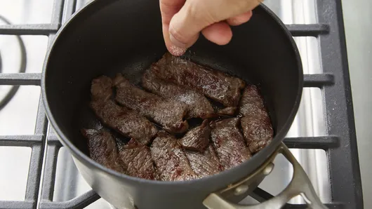 - 1 boneless beef rib-eye steak (1/2 lb), trimmed of fat, cut into bite-size strips
