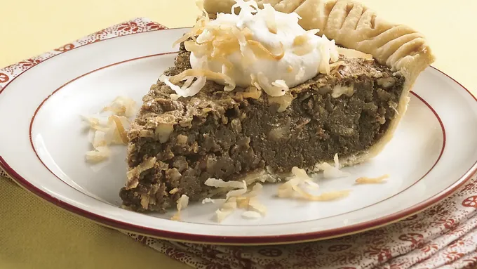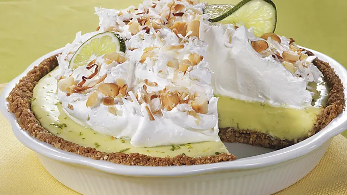 Pistachio pudding and toasted flaked coconut lend nutty goodness to this chilled cream pie.
