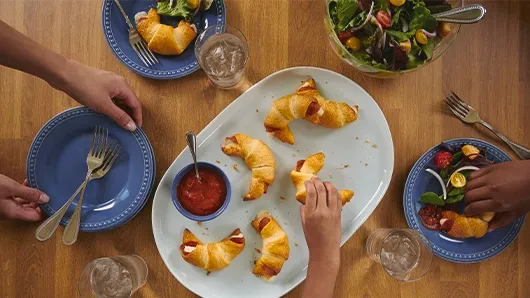 var configuration = {"title":"Pizza Crescent Rolls","introduction":"\u003cp\u003eWhat are pepperoni pizza crescent rolls? Pizza crescent rolls are an ingenious use of favorite pizza ingredients stuffed inside Pillsbury™ crescent rolls. It’s a family-favorite dinner or snack idea you can really sink your teeth into! All you need is four ingredients, and they’ll be on the table (and being devoured) in just 30 minutes.\u003c/p\u003e\n\u003cp\u003eStarting with a can of Pillsbury Original Crescent Rolls makes it quick and easy to create a flaky, tasty, hand-held pizza like no other. Using ingredients you keep on hand, it’s a great go-to dinner to make when it’s a busy night. They are also a terrific warm and gooey snack to enjoy anytime when hunger strikes. \u003c/p\u003e\n\u003cp\u003eThese pastry-wrapped pizzas are a cinch to make! Simply place sliced pepperoni and shredded mozzarella cheese on top of the unrolled crescent dough and roll it up! It’s fun and simple to do—even the kids will want to get in on the preparation. Serving them with your favorite heated pasta or pizza sauce for dipping is an irresistible combination.\u003c/p\u003e","servingSize":"1/8 of Recipe","image":{"small":{"media":"(min-width: 0px)","src":"https://mojo.generalmills.com/api/public/content/rw8qgUE_6E-zcHKiHGR9aQ_webp_base.webp?v=c959caf5\u0026t=e724eca7b3c24a8aaa6e089ed9e611fd"},"medium":{"media":"(min-width: 500px)","src":"https://mojo.generalmills.com/api/public/content/rw8qgUE_6E-zcHKiHGR9aQ_webp_base.webp?v=c959caf5\u0026t=191ddcab8d1c415fa10fa00a14351227"},"large":{"media":"(min-width: 767px)","src":"https://mojo.generalmills.com/api/public/content/rw8qgUE_6E-zcHKiHGR9aQ_webp_base.webp?v=c959caf5\u0026t=191ddcab8d1c415fa10fa00a14351227"},"alt":"Pizza Crescent Rolls"},"contributor":{"label":"By","name":"Pillsbury Kitchens","profileUrl":"/about-us","displayDate":{"label":"Updated","date":"Aug 28, 2024"}},"ingredientGroups":[{"ingredients":[{"quantity":"1","description":"can (8 oz) refrigerated Pillsbury™ Original Crescent Rolls (8 Count)","productLink":"/products/crescents/original"},{"quantity":"24","description":"slices (about 5 oz) pepperoni"},{"quantity":"2","description":"oz shredded mozzarella cheese (1/2 cup)"},{"quantity":"1","description":"cup tomato pasta or pizza sauce, heated"}]}],"steps":[{"description":"Heat oven to 375°F. Separate dough into 8 triangles; pat out each triangle slightly.","stepShotImageUrl":"//mojo.generalmills.com/api/public/content/-RMsDNq0dEODE9BXBeW4NA_webp_base.webp?v=1a1e8dcf\u0026t=51a43a57af4046789e5a7f20567b1195"},{"description":"Place 3 slices pepperoni, slightly overlapping, on center of each triangle. Top each with about 1 tablespoon cheese.","stepShotImageUrl":"//mojo.generalmills.com/api/public/content/XKJmNgi990S3t7z-6VSeUQ_webp_base.webp?v=f36e37bd\u0026t=51a43a57af4046789e5a7f20567b1195"},{"description":"Roll up, starting at shortest side of triangle and rolling to opposite point. Place rolls, point side down, on ungreased cookie sheet."},{"description":"Bake 12 to 15 minutes or until golden brown. Remove from cookie sheet. Serve warm crescents with warm pasta sauce for dipping.","stepShotImageUrl":"//mojo.generalmills.com/api/public/content/savN9FAcQ0CDC_wj7ipZvQ_webp_base.webp?v=9a11a0fe\u0026t=51a43a57af4046789e5a7f20567b1195"}],"tips":[{"title":"","description":"Pillsbury™ pizza crescent rolls is a 5-star dinner recipe everyone will love. Four ingredients and 30 minutes is all you need to get them on the table. ","category":"Rich Snippet"},{"title":"","description":"This pizza crescent rolls recipe calls for sliced pepperoni, but chopped works just as well.","category":"Substitution"},{"title":"","description":"Shape these pepperoni crescent rolls up to 2 hours ahead. Cover and refrigerate them. Bake them just before they\u0027ll be served.","category":"Do-Ahead"},{"title":"","description":"For an appealing lunch, serve a couple of these tasty pepperoni Pillsbury™ Crescent Rolls with a big green salad.","category":"Serving Suggestions/Menu"},{"title":"","description":"Recipe meets Kitchen Tested criteria. Reviewed as part of SEO improvements Oct. 2019.","category":"Kitchen Tested"}],"kitchenTips":[{"title":"","description":"This pizza crescent rolls recipe calls for sliced pepperoni, but chopped works just as well.","category":"Substitution"},{"title":"","description":"Shape these pepperoni crescent rolls up to 2 hours ahead. Cover and refrigerate them. Bake them just before they\u0027ll be served.","category":"Do-Ahead"},{"title":"","description":"For an appealing lunch, serve a couple of these tasty pepperoni Pillsbury™ Crescent Rolls with a big green salad.","category":"Serving Suggestions/Menu"}],"additionalContent":[{"title":"How to Make Pizza Crescent Rolls","description":"\u003cp\u003eHere’s how to easy it is to make pepperoni crescent rolls! For complete instructions, refer to the recipe for all the details so they turn out perfectly every time:\u003c/p\u003e\n\u003ch3\u003e\u003cb\u003eSeparate the Crescent Triangles\u003c/b\u003e\u003c/h3\u003e \n\u003cp\u003eRemove dough from the can and separate using the perforations. Pat each triangle with your fingers to make them slightly larger to hold all the delicious fillings. \u003c/p\u003e\n\u003ch3\u003e\u003cb\u003eTop Crescents with Pepperoni and Cheese\u003c/b\u003e\u003c/h3 \u003cp\u003ePlace pepperoni slices on the triangles and sprinkle with shredded cheese. \u003c/p\u003e\n\u003ch3\u003e\u003cb\u003eRoll Them Up\u003c/b\u003e\u003c/h3\u003e\n\u003cp\u003eRoll up the crescents with the fillings and place them on a cookie sheet. Using the recipe amounts for filling ingredients creates a perfect flaky-dough-to-filling ratio, preventing the crescents from being overfilled, which causes fillings to pop out the sides during baking.\u003c/p\u003e\n\u003ch3\u003e\u003cb\u003eBake and Serve\u003c/b\u003e\u003c/h3\u003e\n\u003cp\u003eBake the pizza croissants and serve with heated