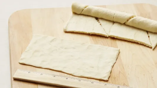 Step2If using crescent rolls: Unroll dough; separate dough into 4 rectangles. Firmly press perforations to seal. Press or roll into four 7x5-inch rectangles. If using dough sheet: Unroll dough; cut into 4 rectangles. Press or roll into four 7x5-inch rectangles.