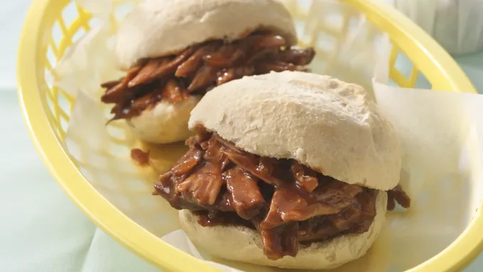 Step4Spread bottom halves of buns with barbecue sauce. Top with pork chops, coleslaw and top halves of buns.