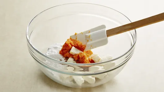 Step2In large microwavable bowl, mix cream cheese, pumpkin, powdered sugar and pumpkin pie spice. Microwave uncovered on High 1 minute, stirring after 30 seconds, until softened. Stir until smooth.