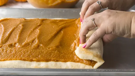 You love our S’mores Pizza Roll-Up, so we know you’ll love this new fall spin with the flavor of pumpkin pie!