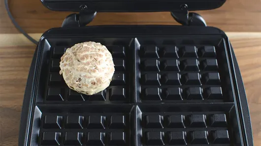 Step3Place the four stuffed rolls on waffle maker. Close cover; bake about 3 minutes or until golden. Remove from waffle maker; drizzle with icing. Serve hot.